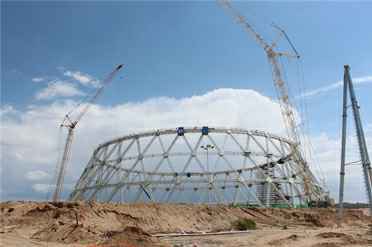 公司蒙能锡林发电厂2×350MW供热机组工程钢结构间冷塔第三层顺利合拢